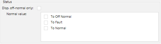 Normal state is not displayed in the individual viewer (Operation, Extended Operation) if the Disp. Offnormal only check box is selected. You can enter the value in the Normal Value entry field representing the normal state. All other abnormal states are displayed in the corresponding viewer if the value is not equal to the set normal value.
