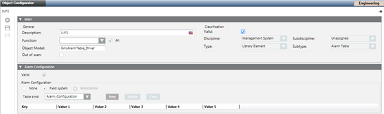 1. In the Object Configurator tab, click New Alarm Table .