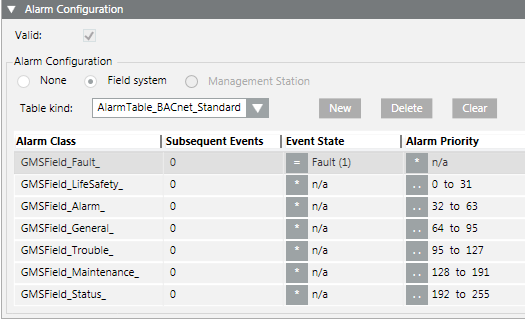 1. In System Browser, select the alarm table you want to delete. For example: Project > System Settings > Libraries > [L4-Project] > BA > Device > BACnet > Alarm Tables > [alarm table].