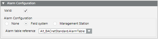 1. In the Object Configurator tab, open the Alarm Configuration expander.