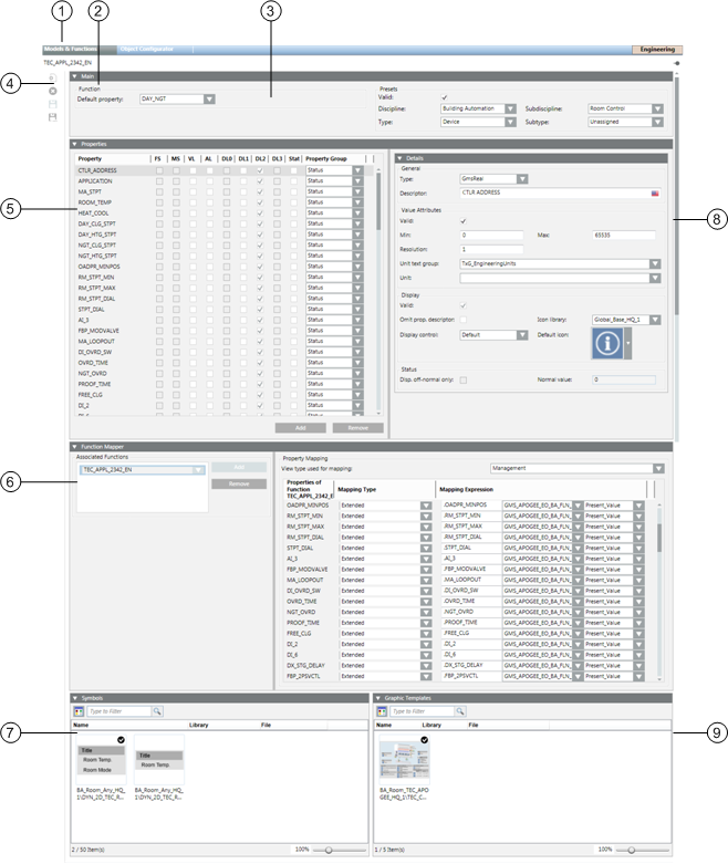 The Models & Functions tab becomes available when you select an Object Model or Function in System Browser. The contents of the workspace vary depending on whether you have selected an Object Model or a Function. For related procedures, see the step-by-step section.